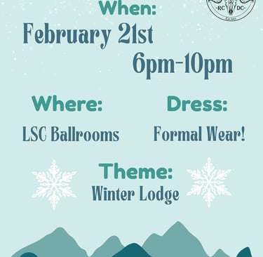 Come join us on February 21st for our winter formal for a night of dancing, socializing and winter spirit in your best formal attire! Free drink and snacks will be provided. We are excited to see you there.